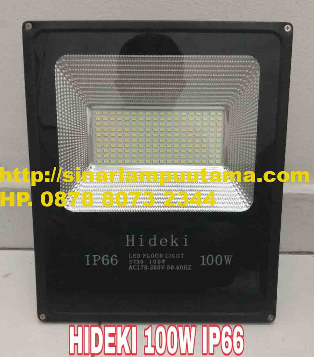 Lampu Sorot LED 100 watt Hideki led flood light 100 watt led smd multi led high power indeks proteksi rating IP66 daya watt besar 100w 220v, kualitas terbaik, super bright, produk terbaru, sangat terang, kuat dan daya tahan lama sampai 50.000 jam, indeks proteksi terhadap air dan debu lebih baik pada rating IP66 menjadikan produk yang handal untuk pemakaian outdoor, untuk lampu penerangan di dalam atau di luar ruangan seperti untuk lampu sorot patung, lampu sorot pameran mobil, lampu sorot untuk lapangan parkir, lampu sorot gedung, papan reklame, area taman RPTRA, lampu sorot untuk tempat kerja workshop, dll