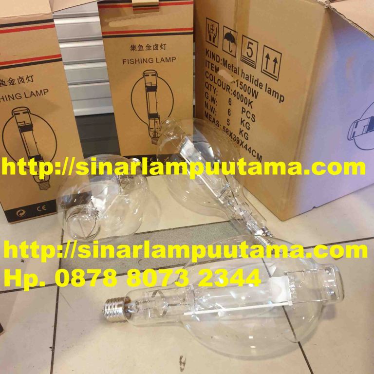 Lampu Cumi Fishing Lamp Tangkap Ikan 1500 Watt untuk kapal nelayan penangkap ikan cumi dan udang daya watt besar 1500 watt bohlam tabung kaca clear, kaki fitting base E40, warna cahaya warm 4000K, cocok dipakai untuk lampu pemanggil cumi atau ikan dengan cahaya yang sangat terang, sehingga dapat menjangkau ke tempat yang dalam menarik datangnya Ikan dan Cumi agar berkumpul di sekitar terangnya bohlam yang sangat terang ini, untuk di tangkap oleh kapal penangkap Ikan cumi nelayan