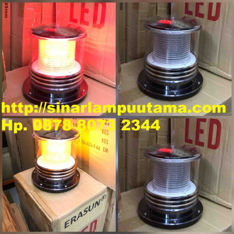 Lampu Menara Kapal Warning Light Solar Cell Strobo Kuning merupakan lampu klip tower kapal warning light tenaga surya yg memiliki flash light warna kuning atau lampu nelayan tenaga surya flash light, cocok untuk dipasang di kapal / perahu, tower atau menara